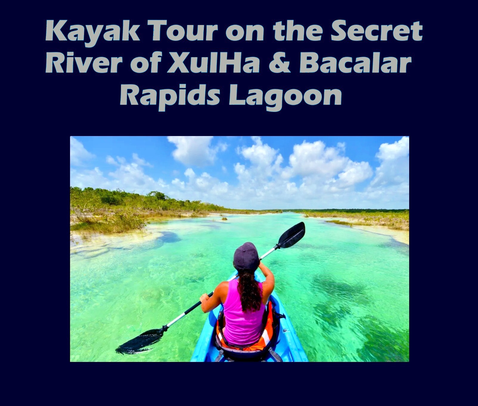 Discover on this tour a Secret River, surrounded by nature and jungle where we will take a kayak tour where if we are lucky we will be able to observe some wild animals such as monkeys, armadillos, coatis, turkeys, agoutis in their natural habitat, later we will navigate the Bacalar Rapids where we will be able to enjoy the incredible landscapes that it offers, its crystalline waters form a great tonality of colors and we will be able to observe some fish and the famous stromatolites, later we will have a regional breakfast and visit the Cenote Azul, an attraction that you cannot miss..